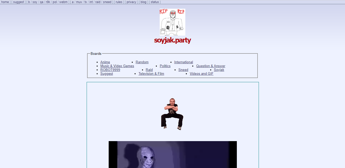 | current | 19:00, 2 September 2025 | 1,346 × 656 (65 KB) | THRUSTVECTORING (talk | contribs) | Front page of soyjak.party during 29/03/2021. |